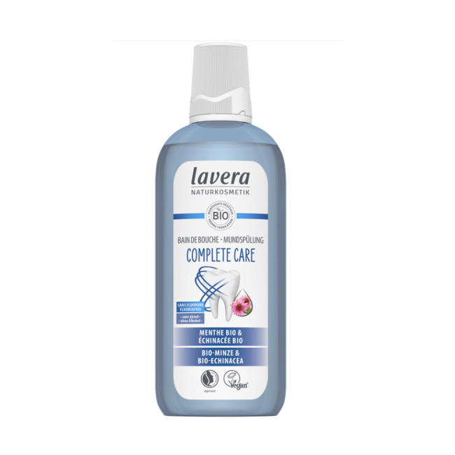 Le Bain de Bouche Sans Flurorure Complete Care de la marque Lavera est un soin quotidien qui permet de prendre soin des dents et des gencives.
