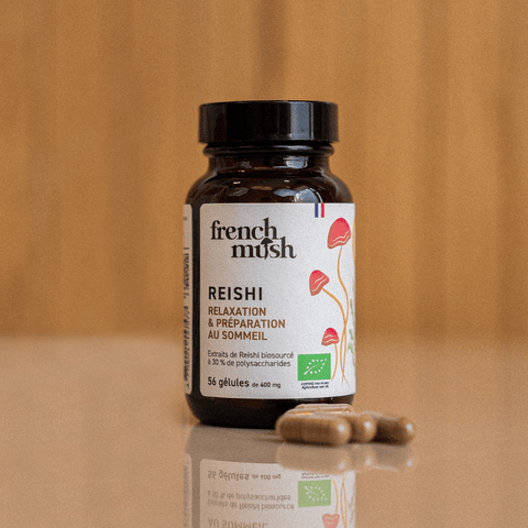 Les Gélules d'Extrait de Reishi de la marque French Mush est un allié naturel pour la relaxation, le sommeil réparateur et le renforcement du système immunitaire. Idéales pour une cure de 30 à 90 jours, ces gélules conviennent à tous ceux cherchant un soutien efficace et naturel.