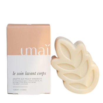 Soin lavant visage solide : Umaï propose aussi un nettoyant visage sous forme solide qui élimine en douceur les impuretés tout en préservant l’équilibre naturel de la peau. Les ingrédients sélectionnés respectent l’épiderme, pour un nettoyage à la fois efficace et non agressif, idéal pour tous les types de peaux, y compris les plus sensibles.