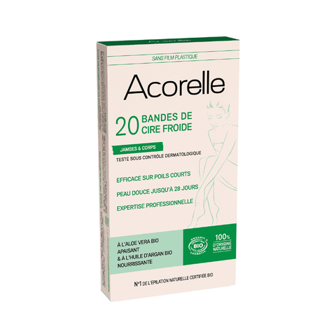Les Bandes de Cire Froide Bio Corps 100% d'origine naturelle d'Acorelle promettent une épilation sans risque et une peau nette.