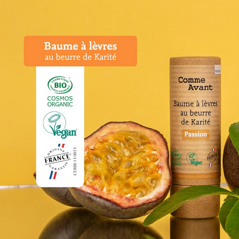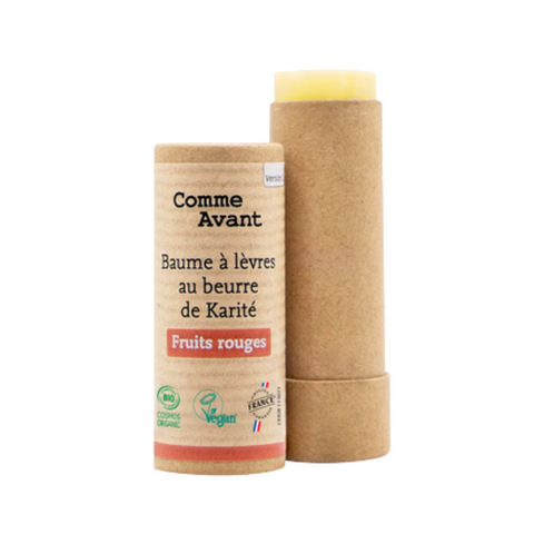 Les Baumes à lèvres au Beurre de Karité de la marque Comme Avant ne sont pas teintés mais offrent 4 possibilités de parfums : Sans parfum - Passion - Fruits rouges - Menthe