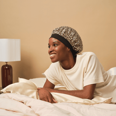 Le Bonnet de Nuit Pure Soie de la marque Emily’s Pillow est conçu pour des cheveux plus brillants, moins cassants et sans nœuds.