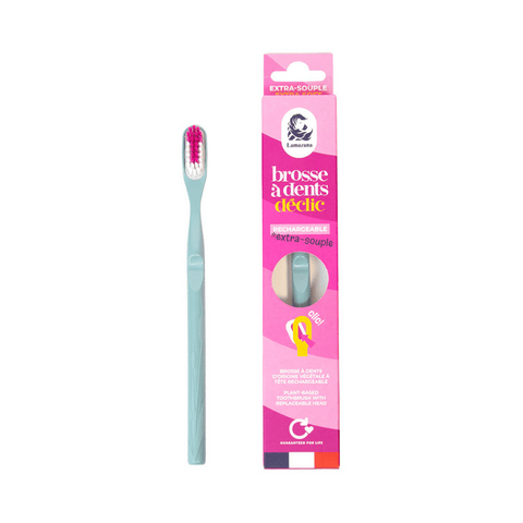 La brosse à dents Déclic souple de Lamazuna est conçue pour offrir un nettoyage optimal tout en étant douce et ergonomique. Sa tête est composée à 98% d'ingrédients d'origine végétale, garantissant une brosse respectueuse de l'environnement. Le manche, robuste et durable, est conçu pour être conservé à vie. Il suffit de changer la tête tous les 3 mois pour maintenir une hygiène irréprochable tout en réduisant vos déchets.