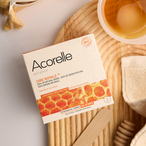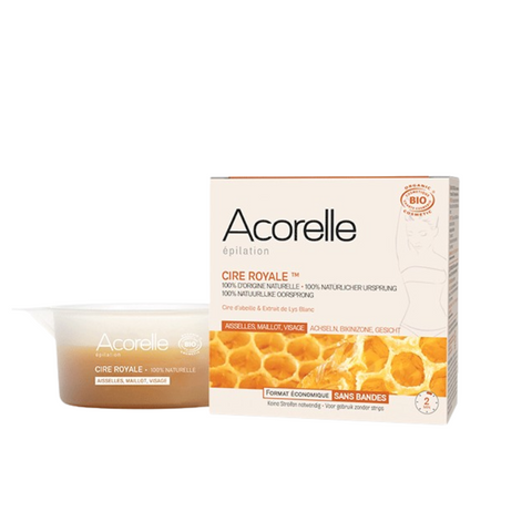 Spécifiquement conçue pour les zones sensibles des aisselles, du maillot et du visage, la Cire Royale Bio de la marque Acorelle certifiée Ecocert et labellisée bio laisse une peau nette, douce et protégée.