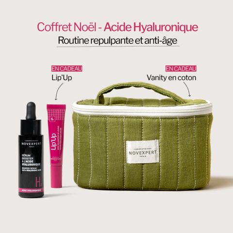 Ce coffret réunit le Sérum Booster à l’Acide Hyaluronique, best-seller de la marque, enrichi en acide hyaluronique naturel de plusieurs poids moléculaires qui hydrate en profondeur tout en lissant délicatement le visage et le cou. Sa texture fluide et légère pénètre rapidement, procurant un confort immédiat. Le soin Lip’Up vient compléter cette synergie avec son action volumisante et nourrissante pour les lèvres. Il marie acide hyaluronique, beurre de karité et huiles végétales qui réparent et sculptent les lèvres, tout en offrant une texture non collante, idéale sous un rouge à lèvres.