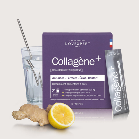 Le Complément Alimentaire Collagène + de la marque Novexpert est conçu pour stimuler la production naturelle de collagène tout en fournissant des peptides ultra-assimilables directement reconnus par la peau. Idéal dès 25 ans et pour tous types de peaux concernées par les signes de l’âge.