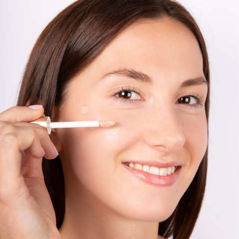 Applique une petite quantité de correcteur sous les yeux à l’aide de l’embout applicateur, puis estompe délicatement au doigt ou au pinceau pour un fini naturel et lumineux.