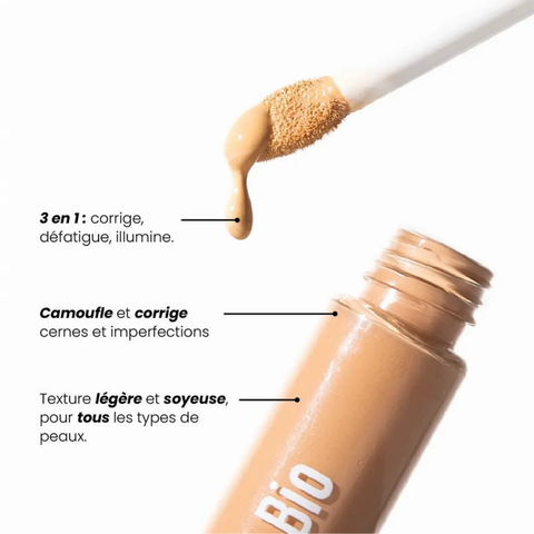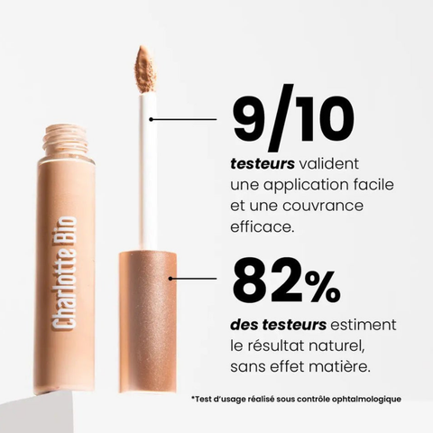 Sa texture crémeuse et fluide glisse sur la peau pour hydrater sans assécher et offre une couvrance modulable pour un fini naturel, lumineux et sans effet de matière. Le Correcteur de la marque Charlotte Bio se présente en flacon avec un applicateur précis. Trois teintes disponibles : Ivoire - Beige Rosé - Nude