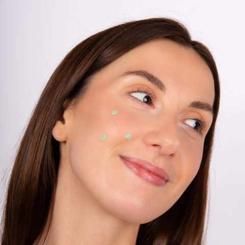 Après votre crème et base de teint, appliquez le correcteur vert directement sur les zones rouges à l’aide du pinceau intégré. Estompez, puis complétez avec un correcteur classique et votre BB cream.