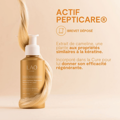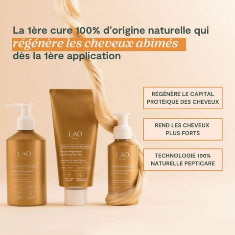LAO Care a mis au point la 1ère Cure de Régénération des liaisons du cheveu 100% d'origine naturelle.