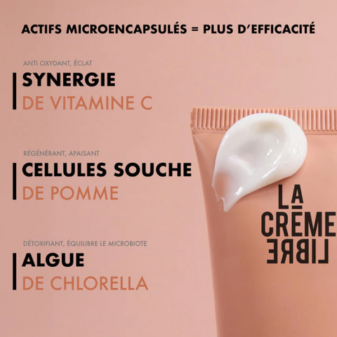 La Crème Originale - Crème Hydratante & Apaisante de chez La Crème Libre, hydrate intensément, apaise et prévient les rougeurs cutanées. Sa formule à base d'actifs micro-encapsulés renforce la barrière de la peau, lutte contre le vieillissement et équilibre le microbiote cutané. Adaptée aux peaux sensibles et réactives, elle convient aux femmes enceintes et allaitantes, ainsi qu'aux enfants de plus de 3 ans. Fabriqué en France et Vegan, cette crème est idéale pour un soin quotidien et naturel.