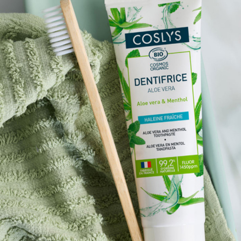 Le Dentifrice Aloe Vera Fluor certifié bio de la marque Coslys est formulé pour toute la famille dès 7 ans, il nettoie efficacement les dents tout en protégeant l’émail et en prévenant l’apparition des caries.