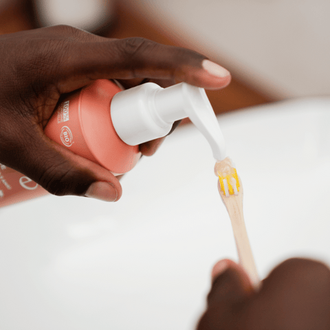 Utilisez une noisette de dentifrice gel au fluor adaptée aux enfants dès 3 ans. Brossez les dents matin et soir avec une brosse à dents en bois, en respectant 2 minutes.
