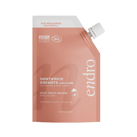 Le Dentifrice Enfants au Fluor de la marque Endro est un soin bucco-dentaire complet pour prévenir les caries, renforcer l’émail et protéger les gencives des enfants dès 3 ans, avec un goût gourmand de fruits rouges.