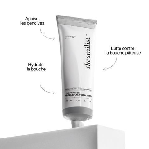 Le Dentifrice Régénérant Gencives de la marque The Smilist est spécialement formulé pour apaiser, hydrater et régénérer les gencives sensibles.