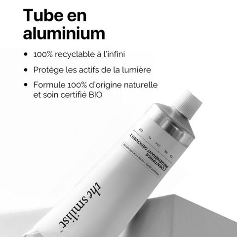 Avec sa texture crémeuse, le Dentifrice Régénérant Gencives de la marque The Smilist offre une application douce et agréable. Il dégage une fraîcheur florale délicate à l’extrait de menthe BIO, qui laisse la bouche propre et rafraîchie. Présenté dans un tube en aluminium recyclable et une boîte en papier recyclé, il allie efficacité et respect de l’environnement.