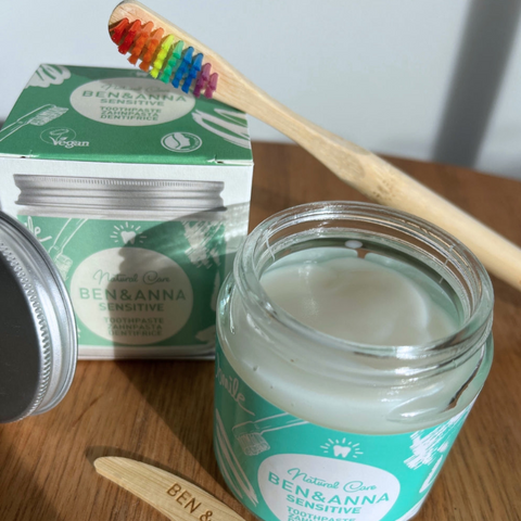 Le Dentifrice Sensitive de la marque Ben & Anna a été conçu pour les dents et les gencives sensibles. Il nettoie efficacement les dents et prend soin des dents en douceur.
