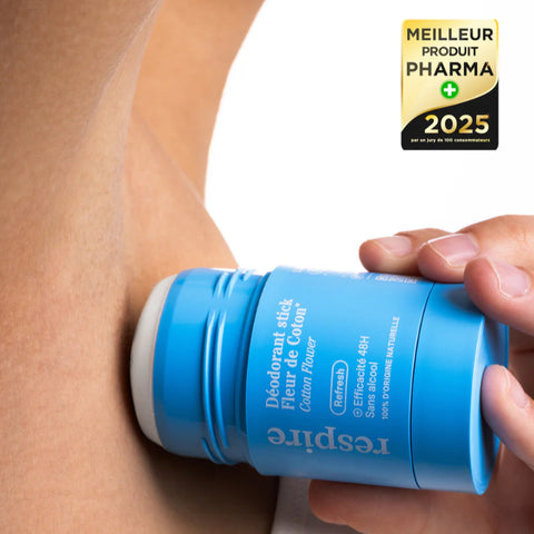 Découvrez le Déodorant Stick de la marque Respire, une innovation certifiée Bio et Vegan, offrant une efficacité déodorante de 48h prouvée, conçu pour respecter la peau et l'environnement. Fabriqué en France avec un engagement fort envers l'éco-responsabilité, ce déodorant s'appuie sur une formule 100% d'origine naturelle qui respecte le processus naturel de transpiration, laissant votre peau libre de respirer tout en étant protégée contre les odeurs et l'humidité !