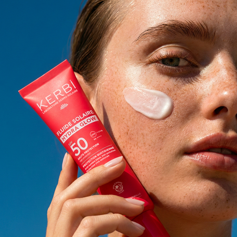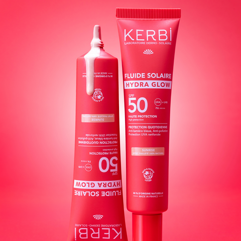 Le Fluide solaire Glow visage SPF50 de Kerbi est une protection solaire visage hydratante et illuminatrice conçue pour un usage quotidien, idéale pour protéger la peau tout en révélant un teint naturellement lumineux.