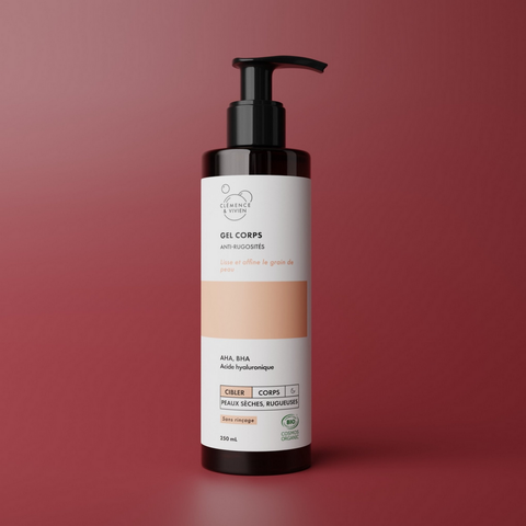 Le Gel Corps Anti-Rugosités de la marque Clémence & Vivien est idéal pour les zones granuleuses, rugueuses ou à imperfections.