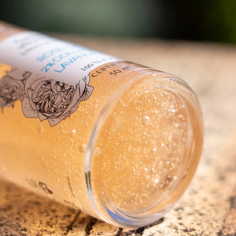 INCI : Rosa Damascena Flower Water* (hydrolat de rose de Damas, tonifiant et apaisant), Lavandula Angustifolia Flower Water* (hydrolat de lavande fine sauvage, apaisant et rééquilibrant), Glycerin** (hydratant), Propanediol (hydratant, co-conservateur), Collagen Amino Acids (acides aminés de collagène végétal, repulpant et anti-âge), Sclerotium Gum (gélifiant, texturant), Leuconostoc/Radish Root Ferment Filtrate (hydratant, co-conservateur), Aqua (eau), Zinc Lactate (purifiant, régulateur de sébum), Hydrolyzed Sodium Hyaluronate (acide hyaluronique de bas poids moléculaire, hydratant et repulpant), Lactic Acid (régulateur de pH), Rose Flower Oil/Extract (molécules aromatiques de rose contenues dans l'hydrolat, allergène), Linalool, Citronellol, Geraniol (allergène naturellement présent dans l'hydrolat de lavande).