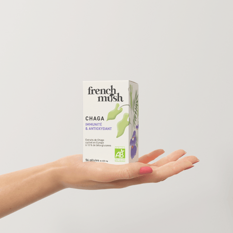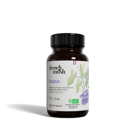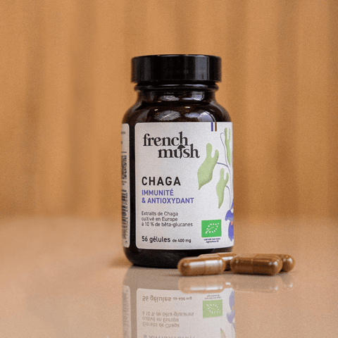 Les Gélules d'Extrait de Chaga de la marque French Mush est un puissant antioxydant naturel aux vertus anti-inflammatoires, idéal pour protéger la peau des dommages oxydatifs et ralentir son vieillissement.