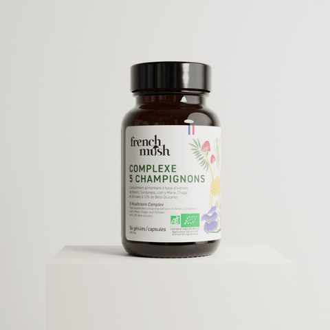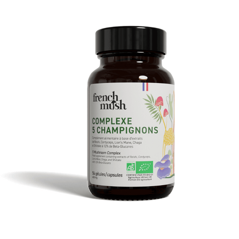 Les Gélules d'Extrait Complexe 5 Champignons de la marque French Mush offrent un concentré naturel pour booster votre vitalité, soutenir votre système immunitaire et favoriser une digestion optimale.