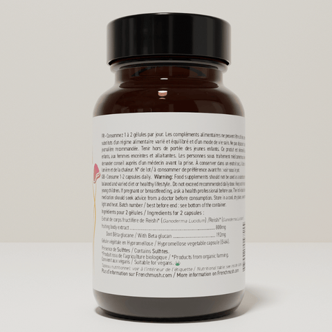 Les Gélules d'Extrait de Reishi de la marque French Mush est un allié naturel pour la relaxation, le sommeil réparateur et le renforcement du système immunitaire. Idéales pour une cure de 30 à 90 jours, ces gélules conviennent à tous ceux cherchant un soutien efficace et naturel.