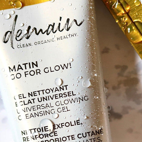 Le Gel Nettoyant Exfoliant Go For Glow de la marque Demain élimine en douceur les impuretés et les peaux mortes, tout en renforçant et équilibrant le microbiote cutané. Idéal pour tous les types de peaux, même les plus sensibles.