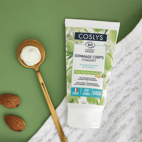 Le Gommage Corps Fondant Bio de la marque COSLYS présente une texture fondante et crémeuse qui glisse aisément sur la peau, offrant une expérience agréable. Le parfum délicat d’amande douce crée une sensation de bien-être lors de l’application. Présenté dans un flacon pratique, il permet une utilisation facile et sans gâchis.