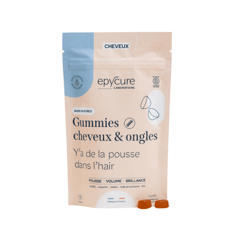Les Gummies Cheveux & Ongles de la marque Epycure sont des compléments sans sucres au goût fruit des bois, conçus pour stimuler la pousse, renforcer la fibre capillaire et révéler la brillance de vos cheveux, tout en améliorant la résistance de vos ongles.