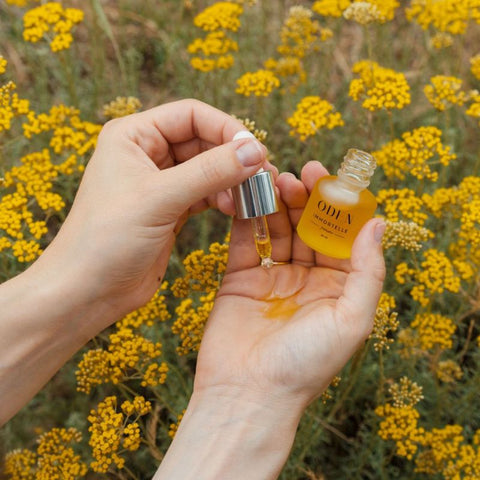 Découvrez l'Huile d'Immortelle de la marque Oden, un véritable trésor du maquis corse, idéale pour les peaux en quête de régénération et de tonicité. Adaptée à tous les types de peau, cette huile précieuse révèle des vertus remarquables grâce à sa richesse en actifs naturels !