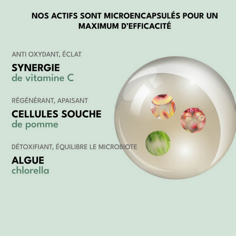 Enfin, un cocktail de supers ingrédients microencapsulés va venir stimuler la régénération cellulaire et uniformiser votre teint.