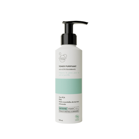 Le Toner Purifiant de la marque Clémence & Vivien est un soin doux qui laisse la peau fraîche, nette et matifiée, sans l’agresser.
