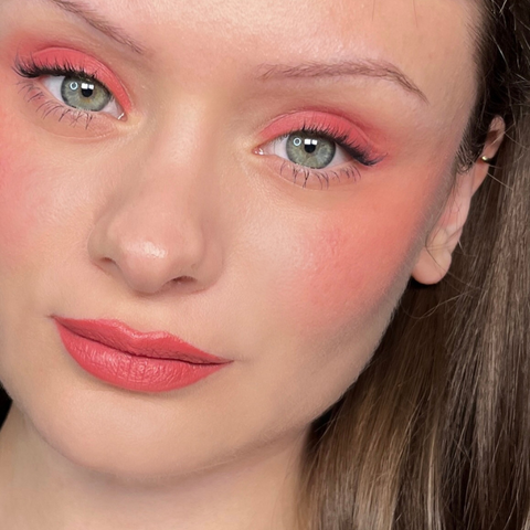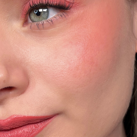 En blush : appliquer une touche sur le haut des pommettes puis estomper.
