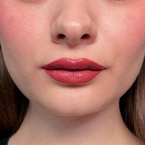 En lipstick, dessiner le contour des lèvres puis crayonner l'intérieur des lèvres.
