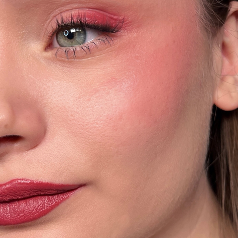 En blush : appliquer une touche sur le haut des pommettes puis estomper.