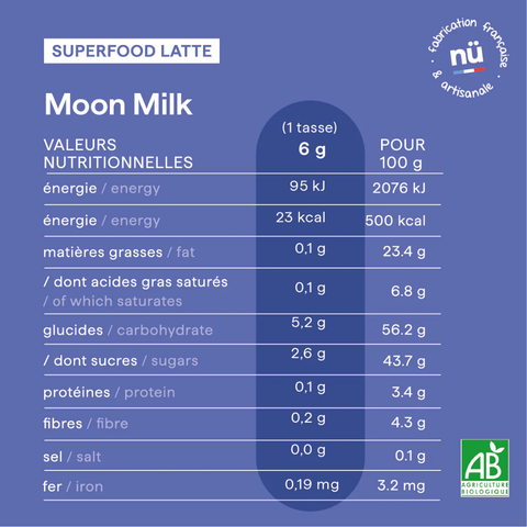 Le Moon Milk peut être préparé et bu à n’importe quel moment de la journée, car il n’entraîne aucune accoutumance ou somnolence. C’est une boisson végétale qui permet seulement de relâcher la pression et de se détendre afin de vivre des journées plus sereines et des nuits plus reposantes !