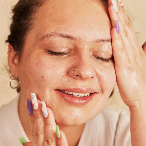 Appliquez l’Huile-en-Lait Démaquillante sur peau sèche, massez délicatement le visage, les yeux et les lèvres, puis ajoutez un peu d’eau : la texture se transforme en lait pour un rinçage facile et doux.