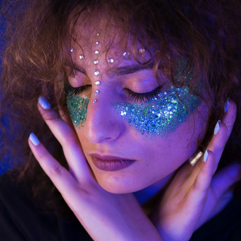 Appliquez une base grasse (baume ou gel) sur la zone souhaitée, puis déposez les paillettes avec un pinceau ou le doigt. Pour retirer, utilisez simplement de l’eau et du savon.