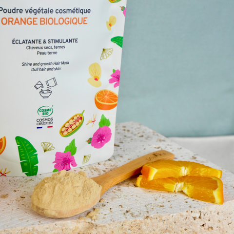 Poudre d’orange : tonifiante et nettoyante, elle débouche les pores de la peau et renforce les cheveux.
