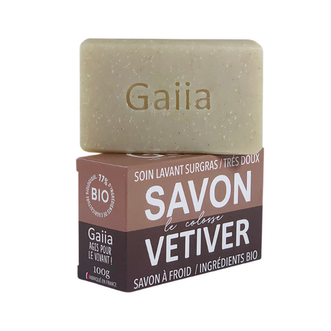 Le Savon Surgras Le Colosse de la marque Gaiia est enrichi en 4 huiles végétales (huiles d’olive, de son de riz, de coco et de ricin).