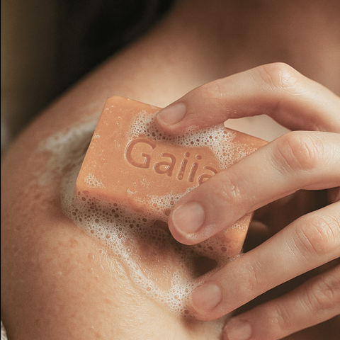 Appliquez le savon l'Intuitif sur peau mouillée, massez délicatement votre peau du bout des doigts jusqu'à créer une mousse légère, puis rincez.