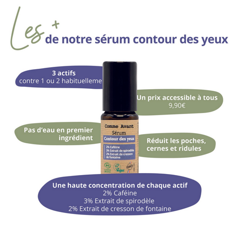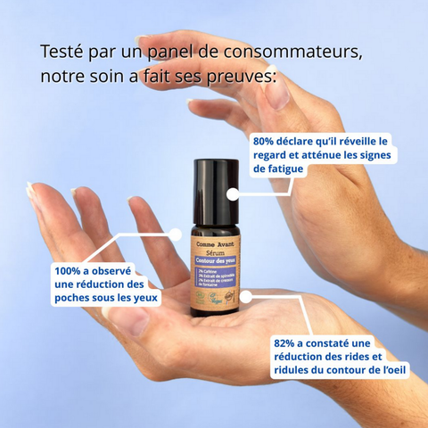 Le Sérum Contour des Yeux de la marque Comme Avant est un soin 100% naturel hydrate, décongestionne et atténue les signes de fatigue tout en prévenant l'apparition des rides et ridules autour des yeux. Il est conçu pour les peaux sensibles et s'adapte à tous les types de peau.