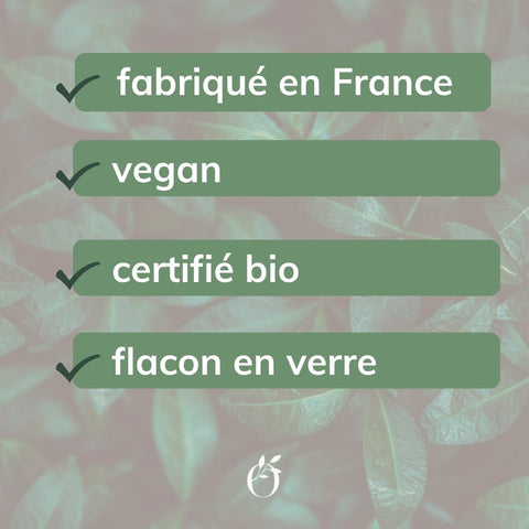 100 % d’origine naturelle, ce sérum est vegan, certifié Cosmos Organic par Ecocert, et fabriqué en France dans le respect de la charte Cosmébio.