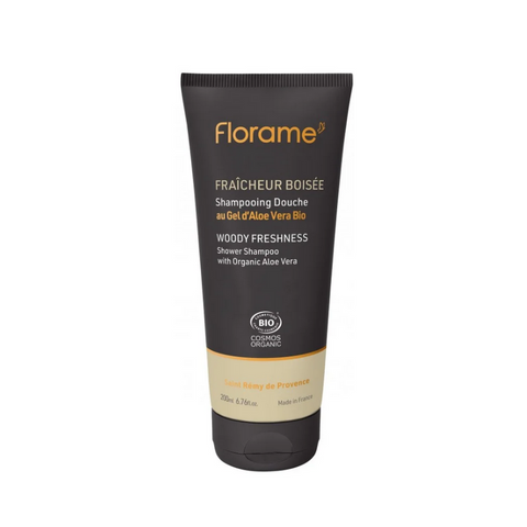 Le Shampooing Douche Homme "Fraîcheur Boisée" de la marque Florame présente une texture est un gel moussant léger, facile à rincer, qui laisse la peau douce et délicatement parfumée de notes fraîches et boisées. Présenté dans un tube pratique de 200 ml, il est idéal pour une utilisation quotidienne, à la maison comme en voyage.