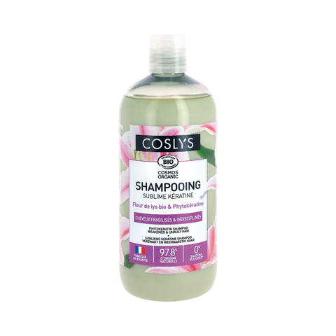 Le Shampooing Bio Sublime Kératine de la marque Coslys est un soin capillaire nourrissant, réparateur et protecteur, idéal pour les adeptes du lisseur ou du sèche-cheveux.