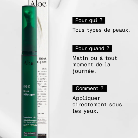 Avec le Stick Défatigant d’Aloe Paris, le regard paraît plus frais, défatigué et visiblement plus lumineux dès l’application.