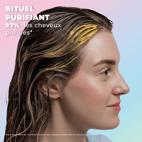 - Le rituel Soin Lavant (à la place du shampoing 1 à 2 fois / mois) : Pour les cheveux à texture qui ont à la fois besoin d’être purifiés à la racine et intensément hydratés sur les longueurs, ce rituel remplace toutes les étapes de votre rituel cheveux habituel ;