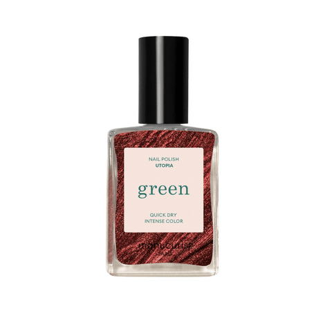 Le Vernis Green de la marque Manucurist assure une tenue de 7 jours et sèche à l'air libre sans lampe UV. Il offre une brillance extrême et durable à vos ongles. Formulé à 84% d’ingrédients bio-sourcés, il est fabriqué en France et vegan  assurant le respect de l'environnement.